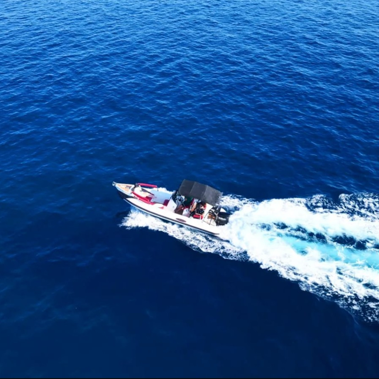 Experience the breathtaking beauty of Santorini like never before with a private boat tour on the stylish and modern Indigo 20, a 2022 speedboat. This 20-foot vessel is powered by a reliable 140 HP main engine (plus an 8 HP auxiliary) and is fully equipped with advanced navigation systems, ensuring a safe and comfortable cruise around the island.